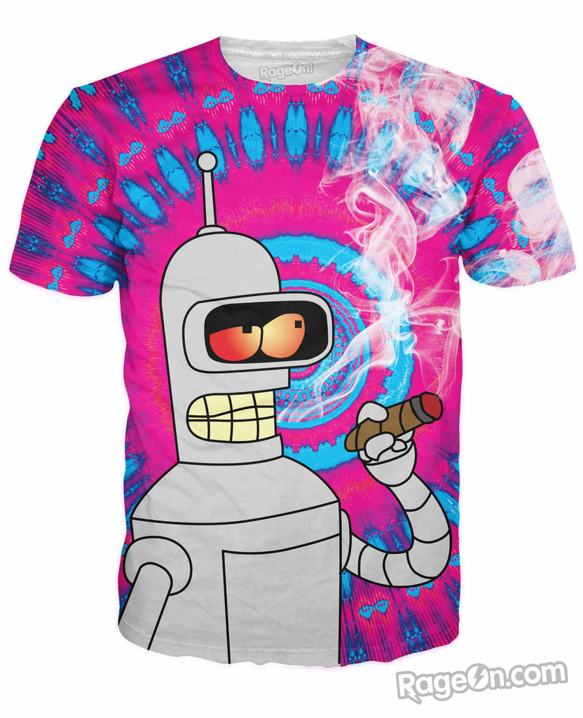 Get this exclusive Blazing Bender T-Shirt from Let's Rage and spark one up with the baddest bot in "New New York". This psychedelic all-over print design inspired by Futurama is available now, only on Rage On!