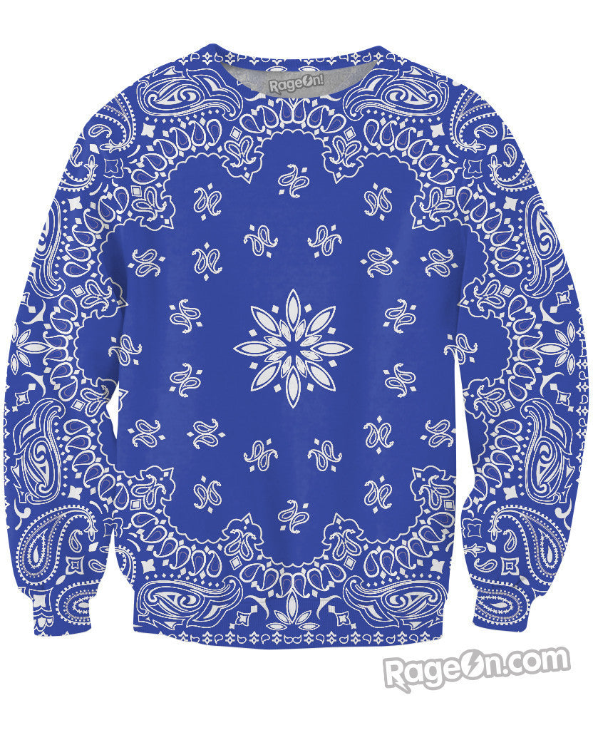Add a bit of boho flair to your life with this vibrant all-overprint Blue Bandana Crewneck Sweatshirt from our Let's Rage brand! Show off your edgy style with this classic fully sublimated handkerchief design! Get held hostage by this sexy jumper today, only from RageOn!