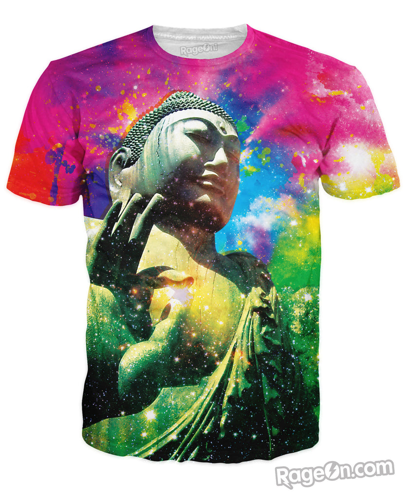 Be one with the universe and the colors around you in this snazzy Buddha Mind T-Shirt by Buddha Pop! This all-over print tee features a rainbow, graffiti-style background and a stone statue of Buddha. Get this shirt today, only from RageOn!