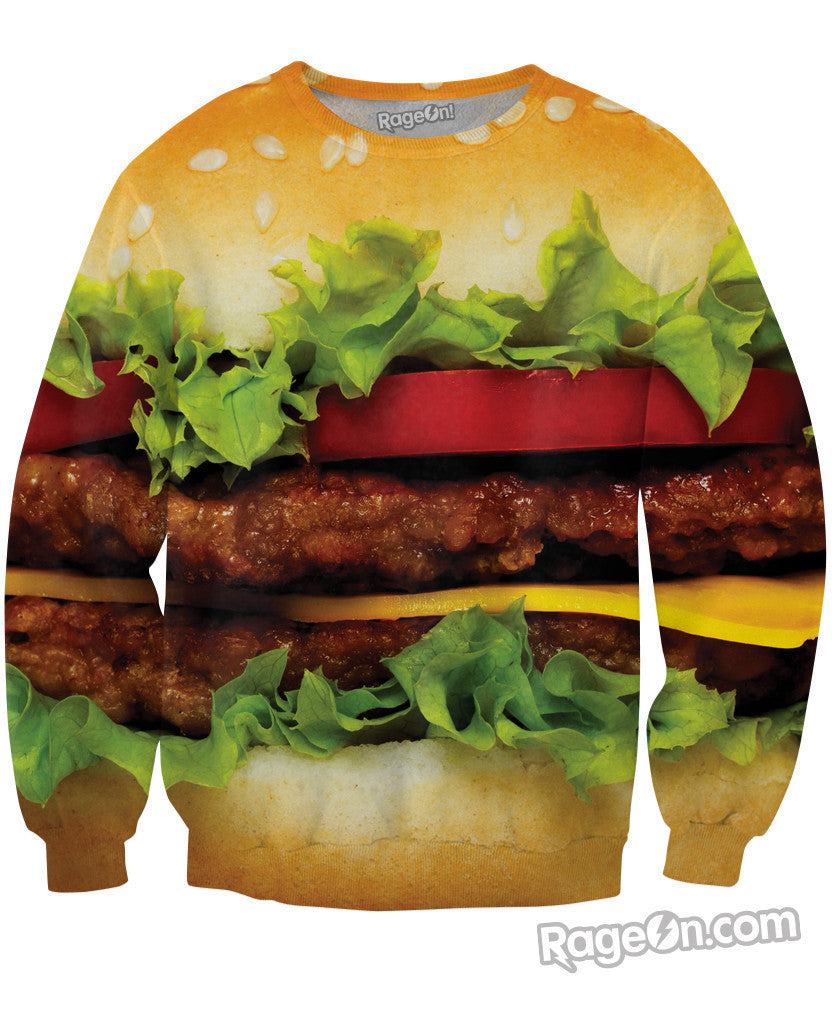 Do you love a good Cheeseburger? Check out the Burger Crewneck Sweatshirt! This sexy sweater is perfect for summer night BBQ's or just to wear for your everyday cooking. Get this hamburger jumper today, only from RageOn.com!