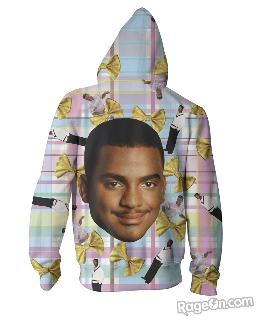 You've seen our Fresh Prince design, but it's time for Carlton Banks to dance his way on to the scene the same way he did on the classic 90's sitcom, Fresh Prince of Bel-Air! Get your all-over-print Carlton Zip-Up Hoodie from Let's Rage now, only at RageOn.com!