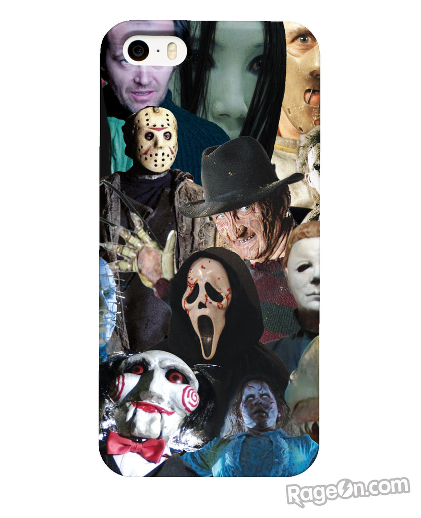 Check out this all-over print Cinema Killers Phone case design! This sexy phone case features a collage of your favorite classical horror movie serial killers, like Michael Myers, Leatherface, Hellrasider, Hannibal Lecter, It the Clown and many more! Scare your friends this this vibrant phone case design today, only on RageOn!