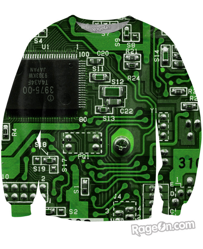 Get this Circuit Board Sweatshirt from Let's Rage! This high tech micro chip all-over print design is available now, only on RageOn!