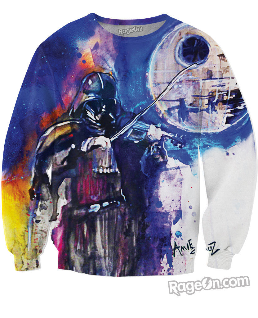 We thought the Devil went down to Georgia, but apparently he was just on the Death Star! Get the Darth Fiddler Crewneck Sweatshirt from artist Amie Stoltz and compete with Darth Vader in a fiddling contest for your soul! This sexy sweater is sure to help you harness The Force, so get this jumper today, available only at RageOn!