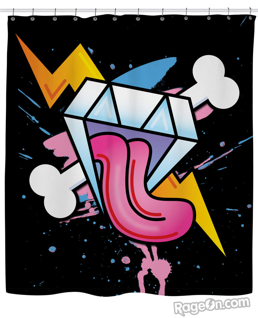 Who doesn't love diamonds? We like our diamonds with lightning crossed with bones, spray paint, and a tongue so juicy sticking out, it'd get Miley Cyrus jealous, just like on this Diamond Lust Shower Curtain. This all-over print bath curtain is sure to make your bathroom the envy of all of your friends, featuring a rock bigger than any of their engagement rings. Get this shower curtain today, only from RageOn!