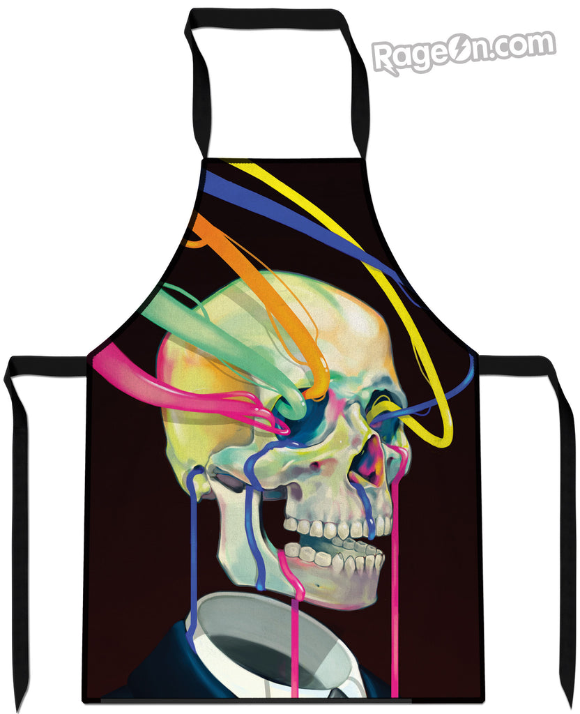 Get this all-over print Dorian Cooking ApronåÊfrom Let's Rage featuring an artistic rendering of a skull in a suit with colors flowing through it's sockets! This colorful all-over print design is available now, only on RageOn!