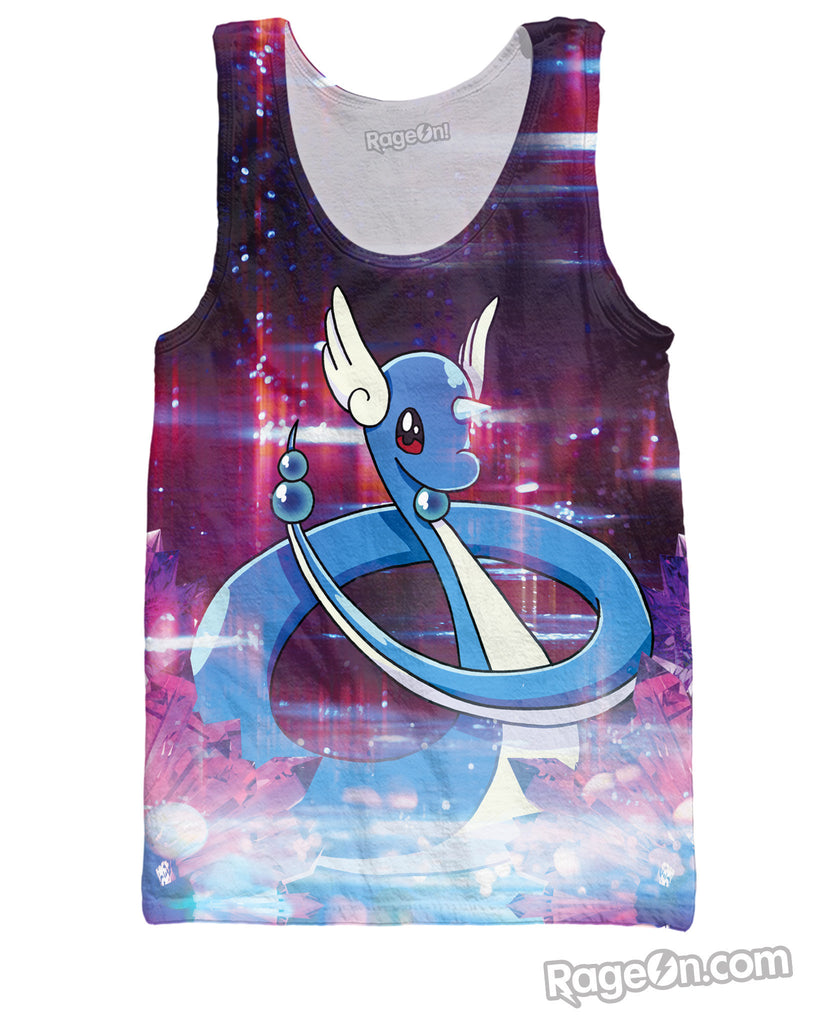 Love rare Pokemon? Then you'll fall in love with this Dragonair Tank Top from our brand Let's Rage. Dragonair is a long, serpentine Pokemon. It emits a distant, gentle aura that can be felt by humans. This beautiful Pokemon is featured on this sexy tank with an aura of sparkles and crystals surrounding it. Get this awesome tank top design now only at RageOn!!
