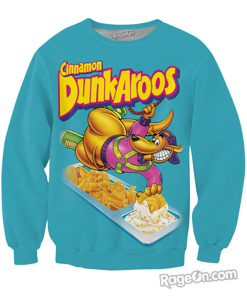 Check out this all-over print Dunkaroos Crewneck Sweatshirt designed by Trick Moranis!! This vibrant jumper inspired by Betty Crocker herself brings back childhood memories dunking in that delicious icing. Be the envy of your friends once again with this classic sweater available only from RageOn!!
