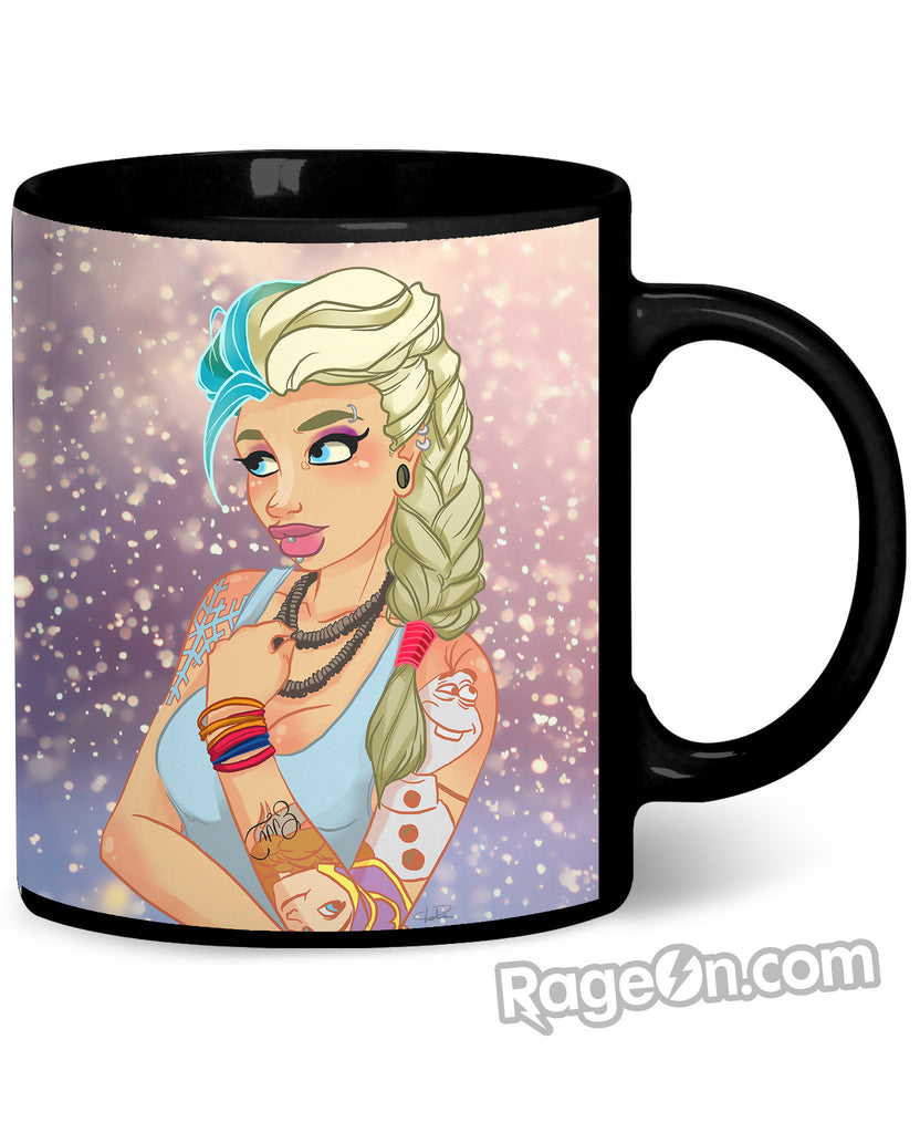 Queen Elsa of Arendelle from the Disney movie Frozen has been transformed into a punk rock princess by Evviart on this Elsa Coffee Mug! This all-over print ceramic coffee mug is perfect for when you're curled up with hot cocoa during the eternal winter, so don't let it go! This coffee cup is available only at RageOn! so get yours today!