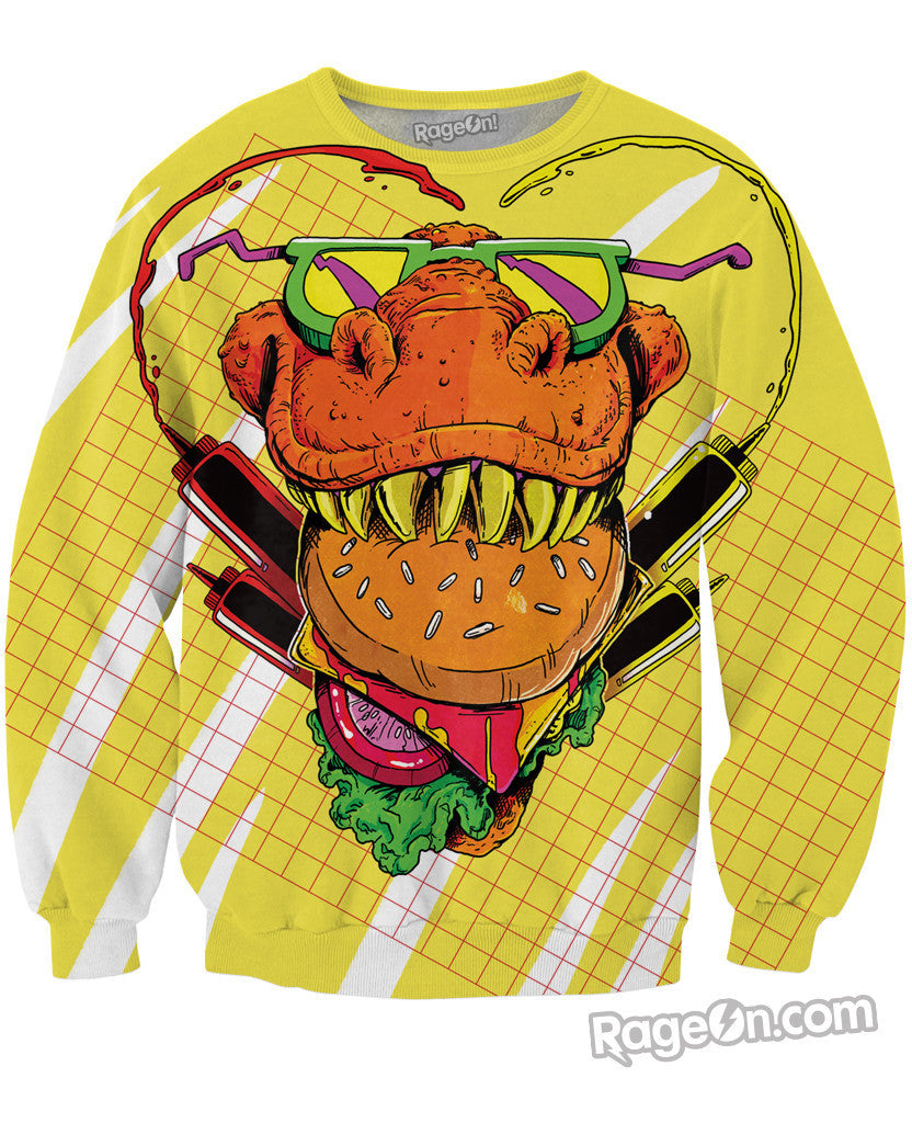 Ketchup with this prehistoric T-Rex that knows sunglasses and burgers are a must-ard essential for prehistoric swag! Get this Food Face Tank Top all-over print design today because your never too cool for clogged arteries!! Only at RageOn.com!!!