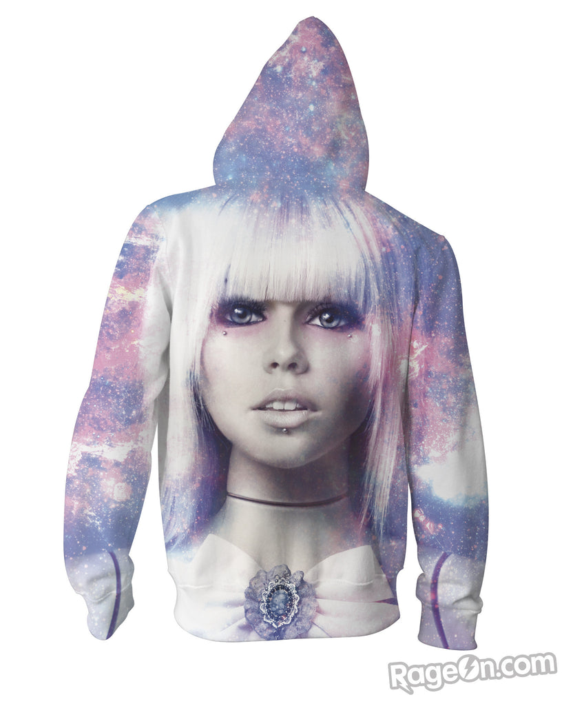 Kerli is the Estonian recording artist who took the EDM world by storm with albums such as Love is Dead and Utopia! With a positive spirit and style often described as "Bubblegoth", she never fails to astound with her DIY creativity and musical talent. Get your all-over print Galaxy Doll Hoodie from Kerli now, only on RageOn.com!