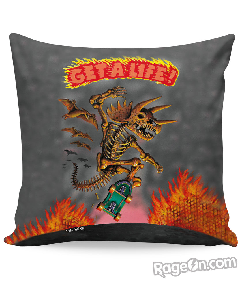 Get wild with the skateboarding dinosaur skeleton on our new one-sidedåÊprint Get A Life Couch Pillow,åÊcreated by Tom Bunk one of the original artists of the Garbage Pail Kids. Get this design today, only from RageOn.com!