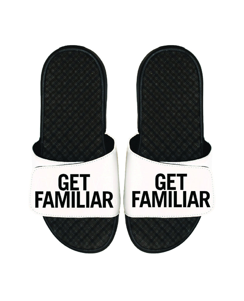 Check out these Get Familiar iSlides from American DJ Clinton Sparks inspired by his signature phrase! Whether you're raging at home or keeping it comfortable for a house party, these sandals from Clinton Sparks and iSlideUSA are top quality merch for the weekend warrior!
