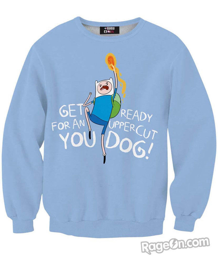 Get ready for an uppercut you dog! Words well spoken from Finn the Human of Cartoon Network's Adventure Time with Finn and Jake. Get ready to fight evil with your new Get Ready sweatshirt, and make your friends and family jealous of your limited edition Adventure Time sweatshirt!