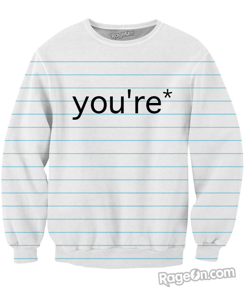 Whether you're good at grammar or terrible like most Americans, get this Good Grammar You're* Crewneck Sweatshirt to remind you how to spell or to help out those near you! Get this awesome Crewneck Sweatshirt only at RageOn!!