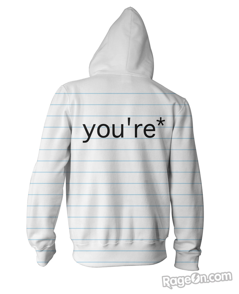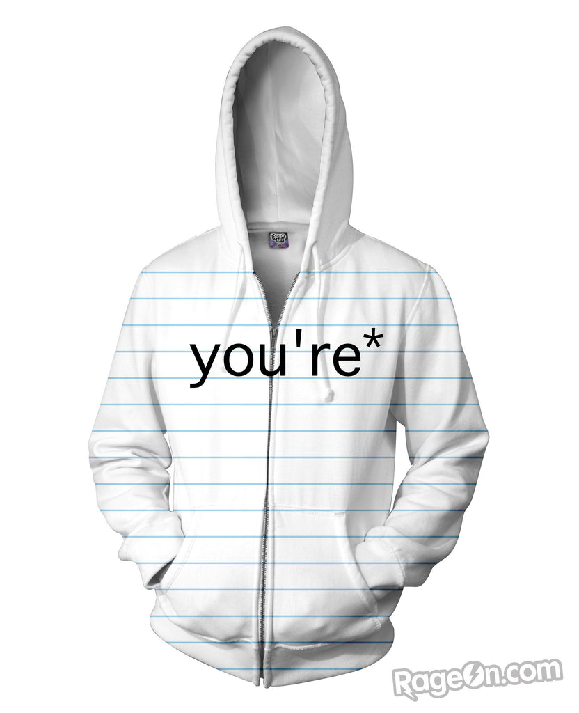 Whether you're good at grammar or terrible like most Americans, get this Good Grammar You're* Zip-Up Hoodie to remind you how to spell, to help out those near you or even people walking behind you! Get this awesome Zip-Up Hoodie only at RageOn!!