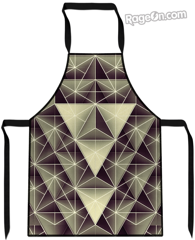 The Isometry Cooking Apron from Let's Rage is a geometric display of light and shades of gray, designed by Ukrainian artist Alexey Romanowski! This artistic all-over print design is available now, only of RageOn!