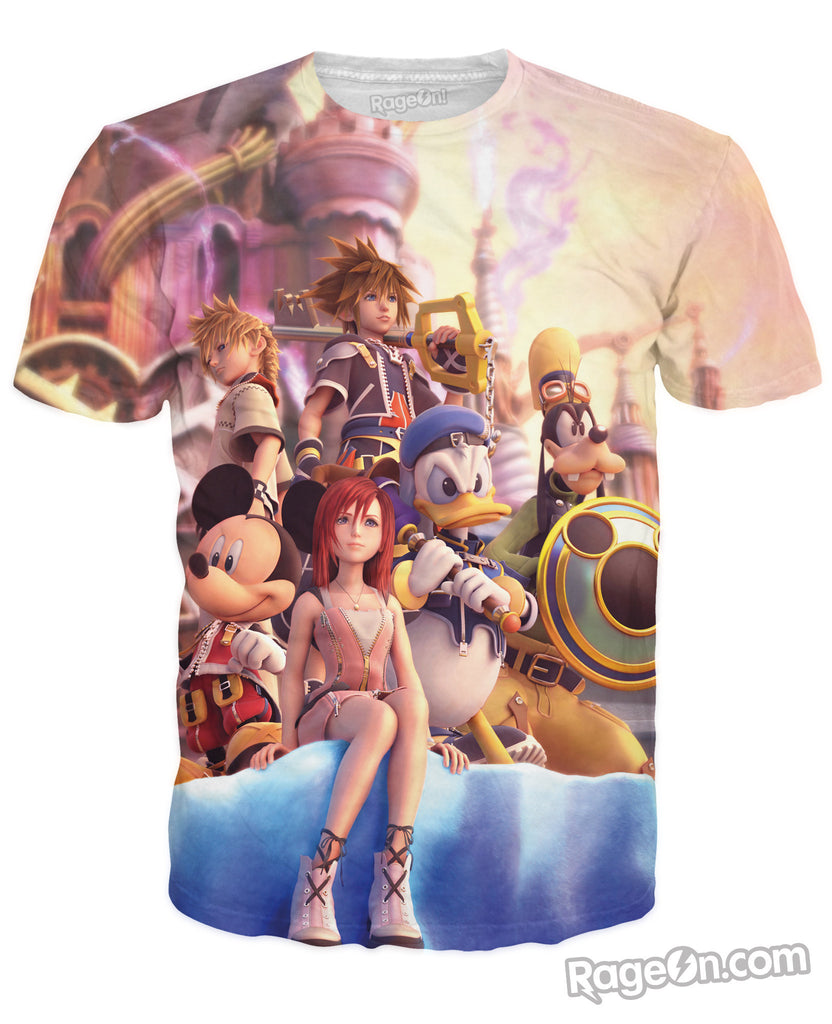 Now you can wear Sora and his Disney, Final Fantasy, and The World Ends With You friends on our new all-over print Kingdom Hearts T-Shirt design! Rep this Square Enix/Disney Interactive Studios favorite on this gem of a sexy tee!
