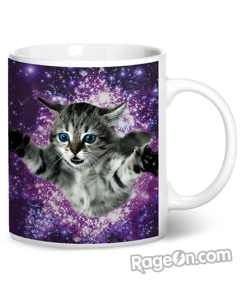 This Kitty Glitter Shower Curtain features a fuzzy a little fella exploring the cat world's final frontier: Space! This adorably wacky all-over print kitten bath curtain is available only from Rage On and is perfect for your bathroom, so get yours today!