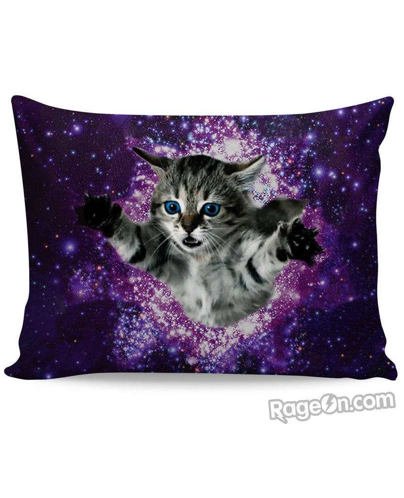 This Kitty Glitter Pillow Case features a fuzzy a little fella exploring the cat world's final frontier: Space! This adorably wacky all-over print kitten pillowcase is available only from Rage On and is perfect for your bedroom, so get yours today!