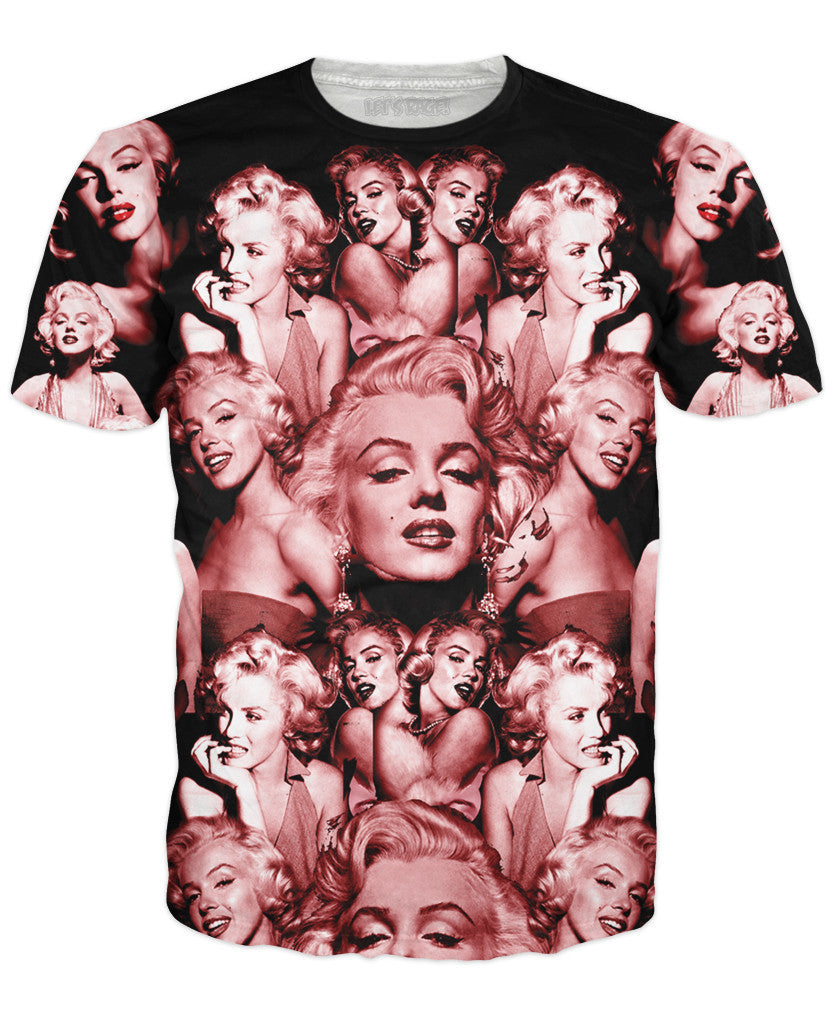 Get this Marilyn Monroe T-Shirt from Let's Rage! This black and red all-over print features a collage of America's classic sex icon! Get yours now, only on RageOn!