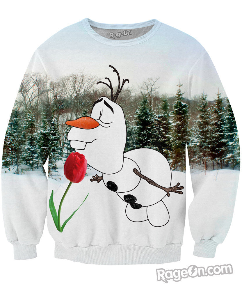 Get all the warm hugs in this Olaf Crewneck Sweatshirt!! Olaf, the snowman designed by Anna and Elsa as kids, represent the innocent love and joy the sisters had before Elsa couldn't conceal and not feel her ice powers. Once Elsa runs away to her ice kingdom, Olaf becomes a real life snowman! Some people are worth melting for and we think everyone would melt for you in this jumper! Get this sexy sweater now at RageOn!!