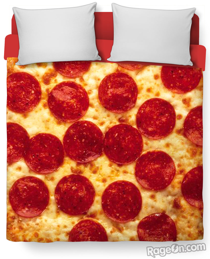 Pizza is the food of the gods, represent your higher status with this all-over print Pizza Bed Duvet Cover and Pillow Case design today! Only from RageOn.com!!!