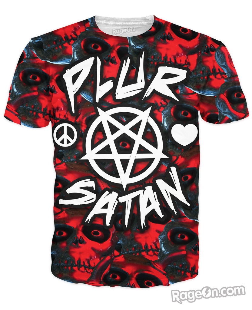 Exchange your kandi bracelets with Satan with this all-over print PLUR Satan T-Shirt from Let's Rage! This red and black demonic design is available now, only on RageOn!