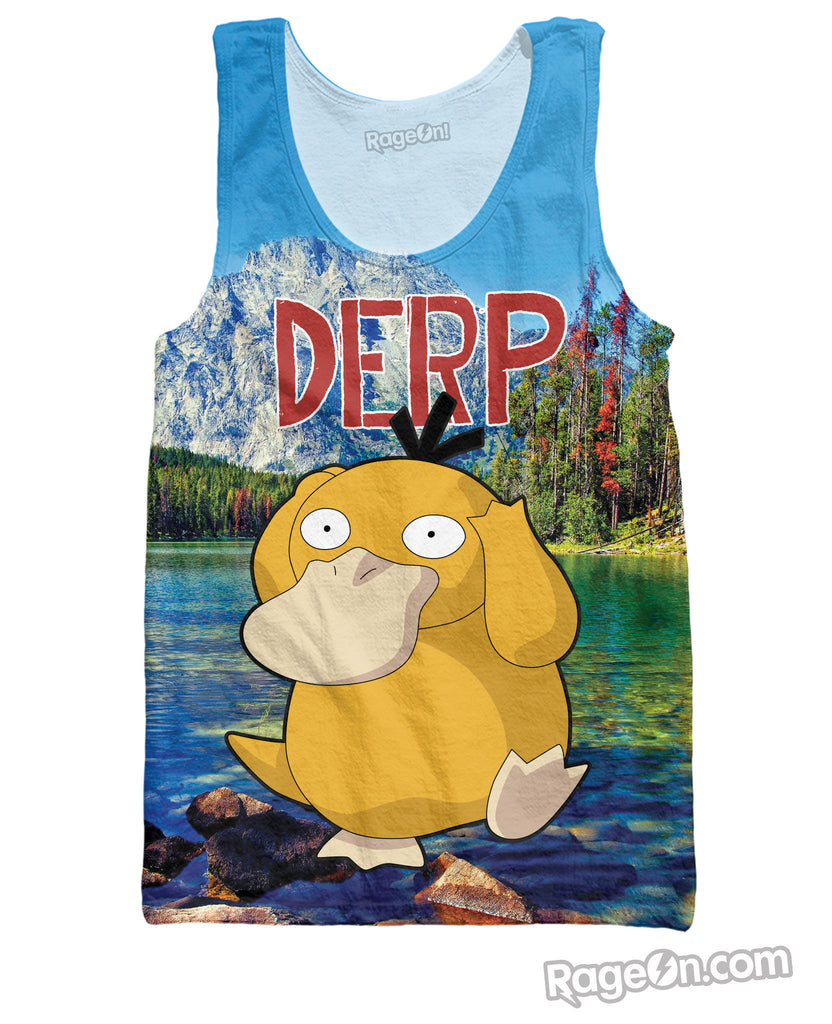 Don't be a DERP instead check out this all-over print Psyduck Tank Top design! This sexy tank features first generation water-type Pokemon, Psyduck! Don't get confused, evolve your closet and psyche out with this vibrant tank top design today, only on RageOn!