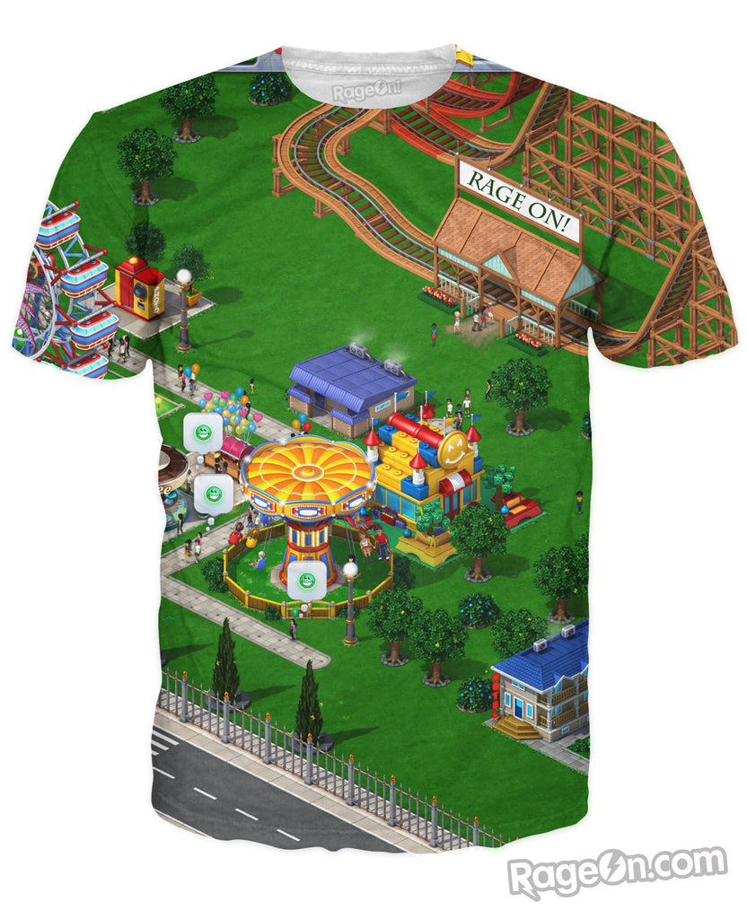 Get this awesome 90s throwback all-over print tee with the Rollercoaster Tycoon T-Shirt! Hasbro released this game on Windows in '99, but this shirt will make sure this PC-gaming classic will live on in your heart forever. Get yours today, only from RageOn!