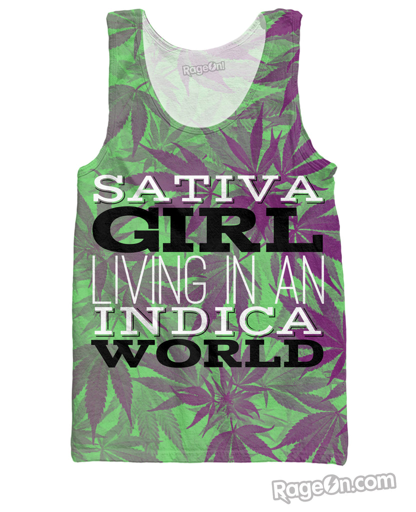 This Sativa Girl Tank Top reads "Sativa girl in an Indica World" for those ladies who love the mind boosting cerebral highs of Sativa weed strains. Get yours now from our High Times brand!