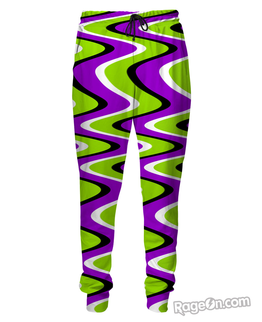 Check out this Snazz Sweatpants by artist Pocket Soup! Depending on how you look at it, these sexy pants features some snazzy purple and green wavy lines. These sweatpants will put those into a trippy trance who stare too long! Get these sweatpants only at RageOn!!