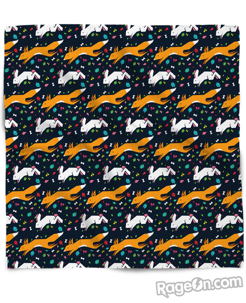 This The Chase Bandana is work from non other than Peach Munkey! This fun hanky features fox's chasing little bunnies around. How cute! Get this from RageOn now!