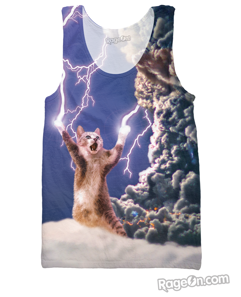 Get this Thundercat Tank Top from Let's Rage now! This all-over print design features a crazy kitty shooting lightening from his hands and is available now, only on Rage On!