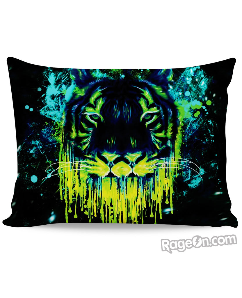 Check out this Tiger Drippy Pillow CaseåÊfrom Let's Rage! This all-over print design features a blue and yellow tiger dripping like paint! Get yours now, only on RageOn!åÊ
