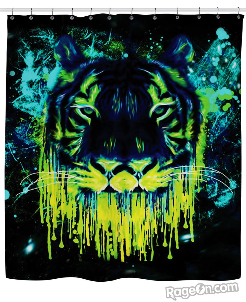 Check out this Tiger Drippy Shower CurtainåÊfrom Let's Rage! This all-over print design features a blue and yellow tiger dripping like paint! Get yours now, only on RageOn!åÊ
