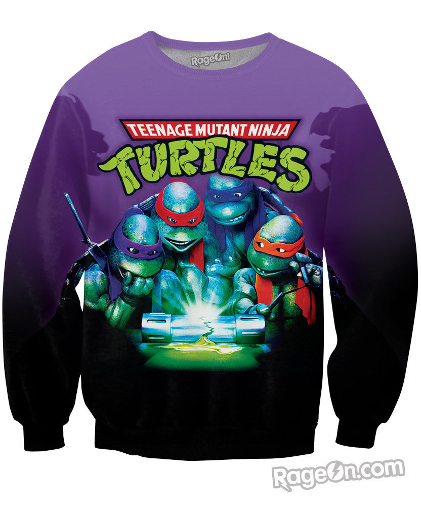Check out this all-over print TMNT Crewneck Sweatshirt design by artist Trick Moranis! This sexy sweatshirt features the classic 90s themed Teenage Mutant Ninja Turtles! Get your vibrant jumper today, only on RageOn!