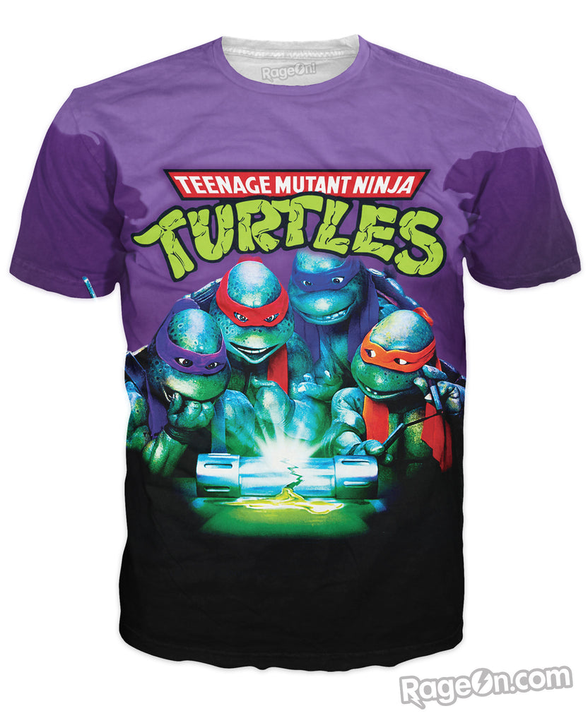 Check out this all-over print TMNT T-Shirt design by artist Trick Moranis! This sexy tee features the classic 90s themed Teenage Mutant Ninja Turtles! Get this vibrant t-shirt design today, only on RageOn!