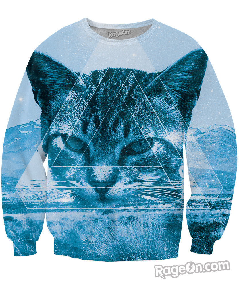 If you love kitties then this Triangle Cat Crewneck Sweatshirt from Let's Rage is for you! This sexy sweater features a cute little cat with transparent triangles around it and a beautiful snowy scenery behind him. This is basically every white girls dream on a jumper. Get this sweatshirt now at RageOn!!