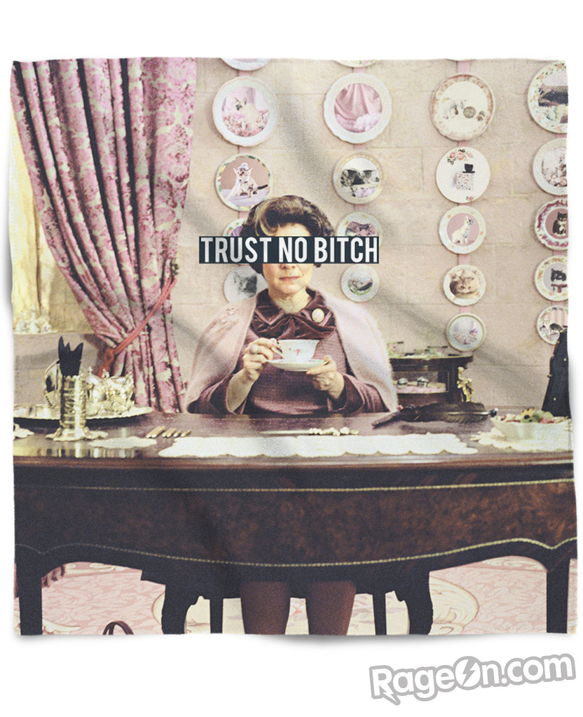 Delores Umbridge is the bitchiest bitch of all the bitches with this one-sided print Trust No Bitch Umbridge Bandana design! Show the Ministry of Magic that Delores Umbridge can not be trusted, only from RageOn.com!