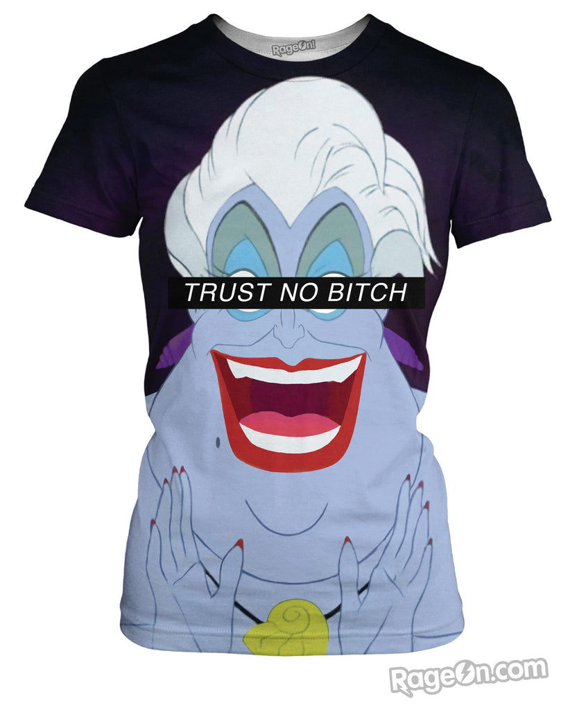 Get this Trust No Bitch Ursula T-Shirt from Let's Rage! You don't have to be Ariel to know Ursula is the cruelest bitch under the Sea! Get this all-over print Little Mermaid design now, only on Rage On!