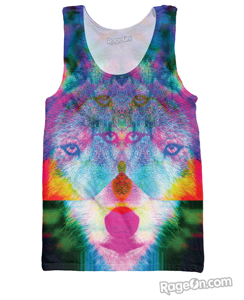 This all-over print Wonder Wolf Tank Top is designed by Larry Carlson! This tank features a beautiful wolf in a psychedelic colorful look. You'll look trippy while you howl at the moon against the night sky!! Only at RageOn!!!